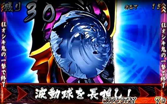殺意の波動に目覚めたリュウの攻撃がヒットするたびに鬼玉を獲得し、最終ゲームで鬼玉=ストックした上乗せゲーム数を一気に放出する。鬼玉の色は上乗せゲーム数期待度を示唆しており、紅葉柄や金なら大チャンスだ。