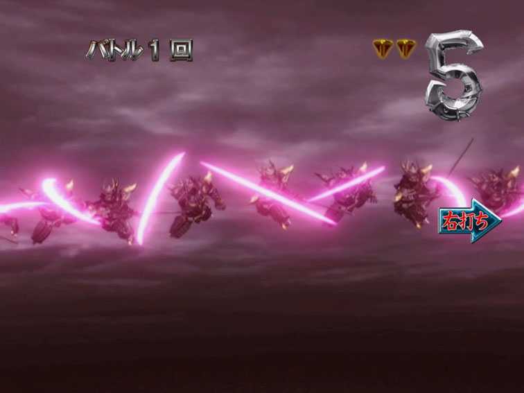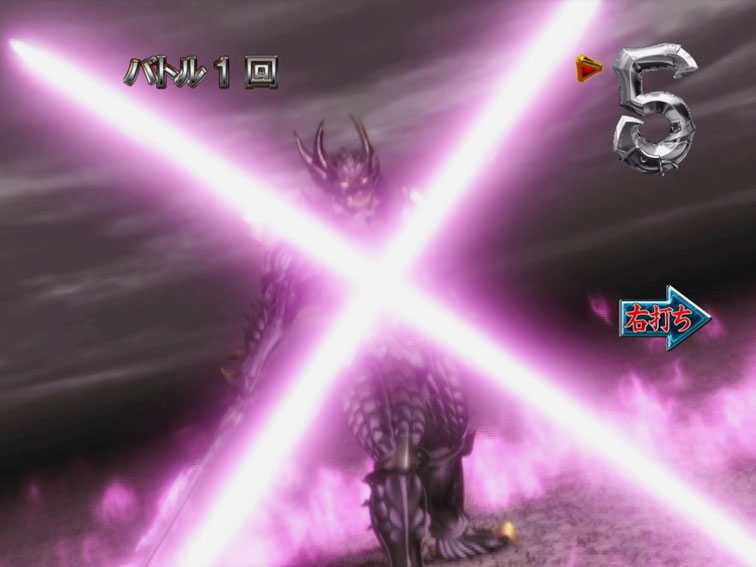 通常時に3or7図柄が揃うと発生する4R大当りで、魔戒CHANCE突入濃厚。ラウンド中バトルは発生しない。