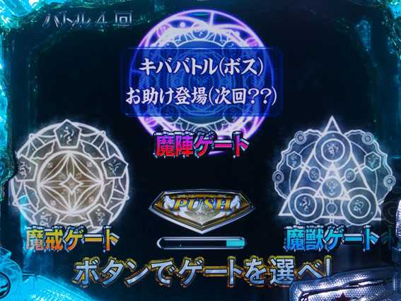 ガロが倒れなければ魔戒CHANCE継続。チャンスアップパターンも多彩で、中には出現時点で継続濃厚となるケースもある。なお、ラウンド開始時に発生するゲート演出では、魔戒ゲートを選ぶと「キババトル」or「ホラーバトル」or「お助け登場」が発生し、魔陣ゲートは「キババトル」or「お助け登場」、魔獣ゲートは「ホラーバトル」が発生する。
