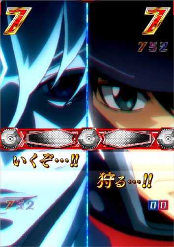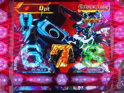 発展契機としての役割が強く、出現する特殊図柄の種類や数が重要。出撃図柄・覚醒図柄・JURIAシステム図柄・ライノス図柄などが停止すれば、各対応演出へと発展。また登場するウルガルのキャラにも注目だ!