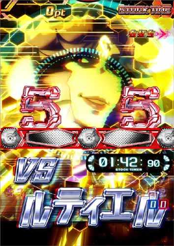 STOCK TIME中はリーチが成立すればチャンス(期待度約20%)で、バトルリーチへ発展すれば激アツ(期待度約90%)となる。また、滞在中は突如図柄が揃う即ストックパターンが豊富に存在している。