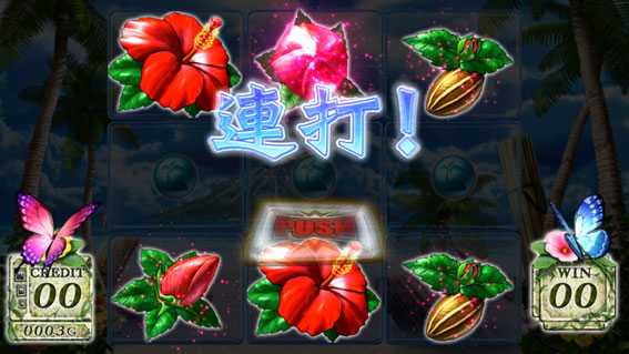 リールに種停止後、ボタン連打でハイビスカスが1ライン以上咲けば!?