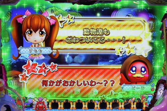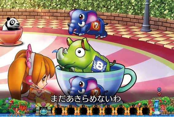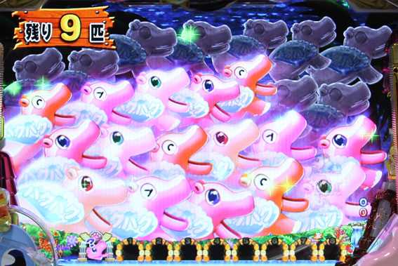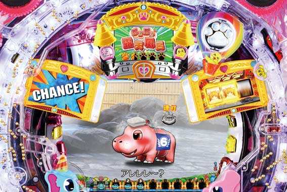 テンパイした図柄の動物がお風呂に入っていれば大当り。直当りよりもハズレ後のストーリー系リーチ発展に期待。