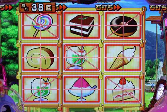 中央以外のマスすべてにスイーツ図柄が止まると発展!