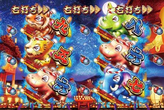 奇数図柄揃いで発生する15Rの確変大当りで、終了後は夜祭りモードへ突入。