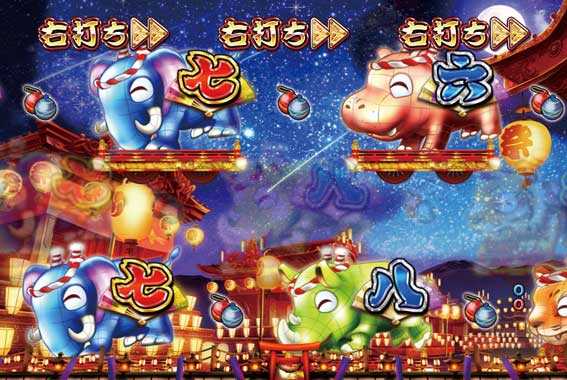 キッズチャレンジに成功すると発生。6Rの確変大当りで、終了後は夜祭りモードへ突入。
