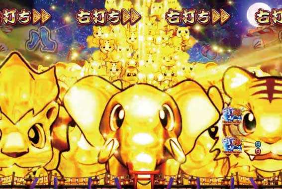 テンパイ図柄の動物が主役になる激アツリーチ。当たれば確変濃厚!!