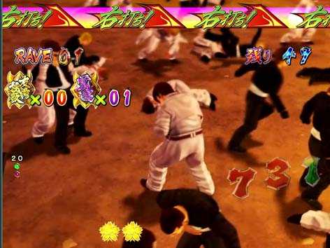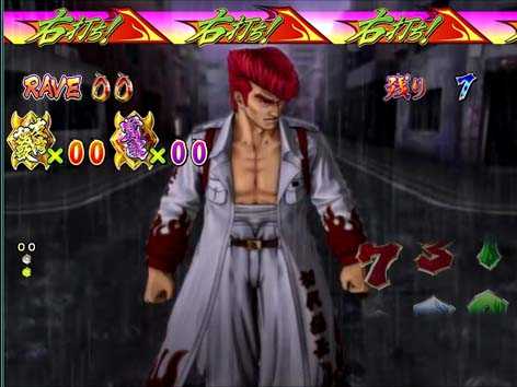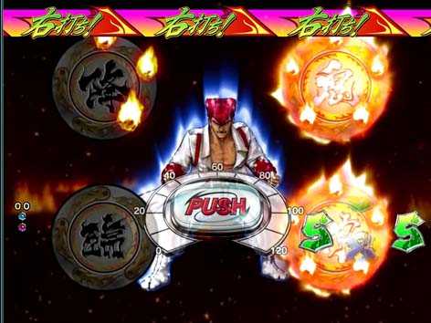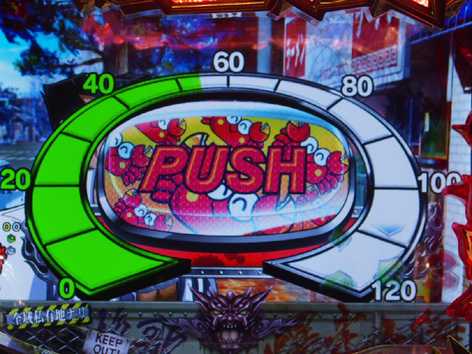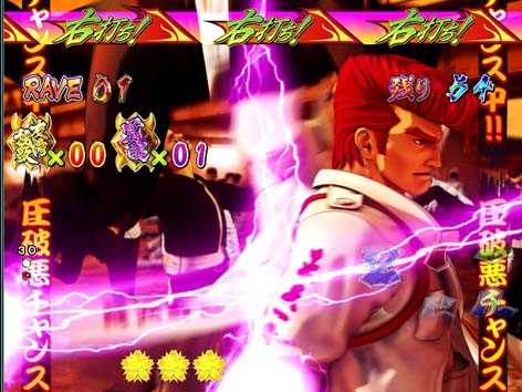 男ボーナス中に発生する昇格アクションで、ボタンを押して「狂乱麗舞」図柄が停止すれば、V入賞でST・狂乱麗舞へ突入。失敗した場合は時短・カッ飛び!!ZONEへ突入する。ボタンマークがカニ柄なら大チャンス!?