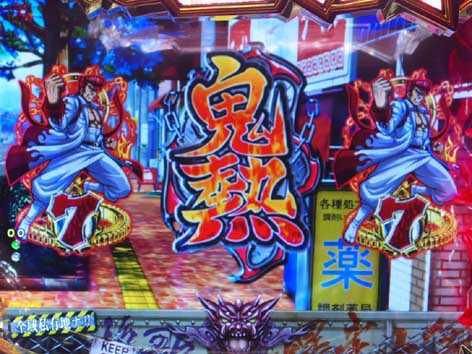 リーチ後の強予告。気合の入った鬼浜キャラのムービーが発生。
