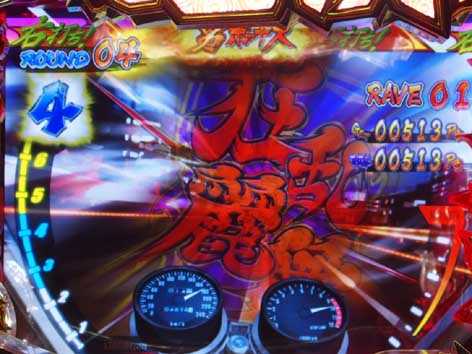 ノーマルリーチハズレ後に単車に乗ったリュウジが登場すると発展。揃った図柄が多いほど期待度アップ!?