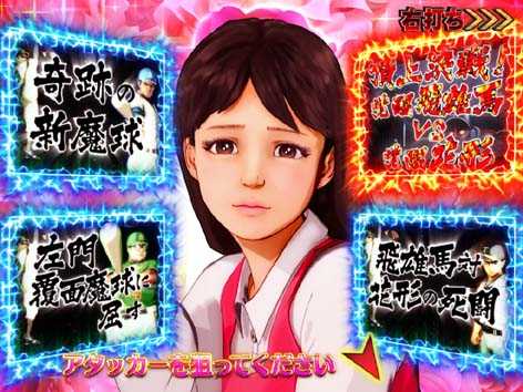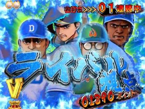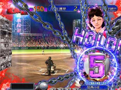 対決モード中はテンパイする図柄の色が重要で、赤図柄はテンパイした時点で大当り+モード継続濃厚。紫図柄テンパイはストーリーリーチorキャラクターリーチ発展濃厚で、大当りすればモード継続、ハズれてもモードが終了する心配なし。青図柄テンパイは対決リーチ発展濃厚で、野球対決に勝利すれば大当り+モード継続、敗北した場合は大当り+再起チャンス突入となる。