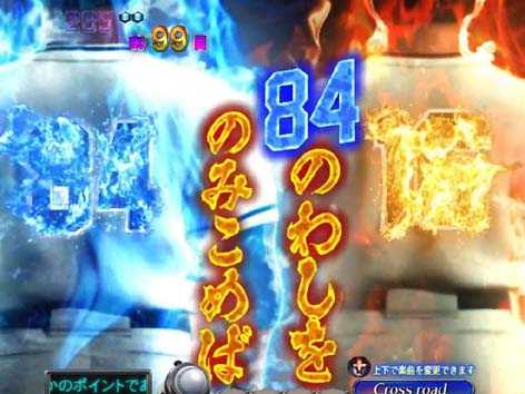 燃焼BONUS図柄停止で発生する大当り。この大当りも確変で、ラウンド後は対決モードへ突入。