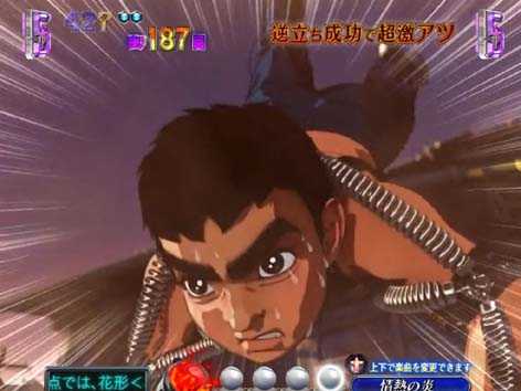 通常時のカギを握るのは「情熱演出」で、5人集結すれば(情熱アイコンを5個獲得)一気に大当りが現実的に!! また、他の演出ではSP発展分岐演出の赤・飛雄馬フェイス発動が重要だ!