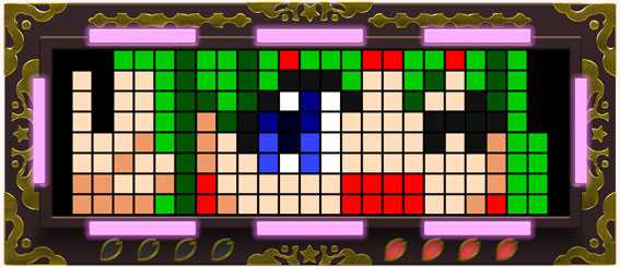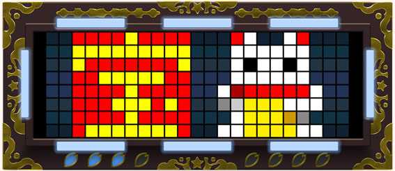 ハズレ図柄を小槌で粉砕。小槌の色で期待度が変化するぞ。