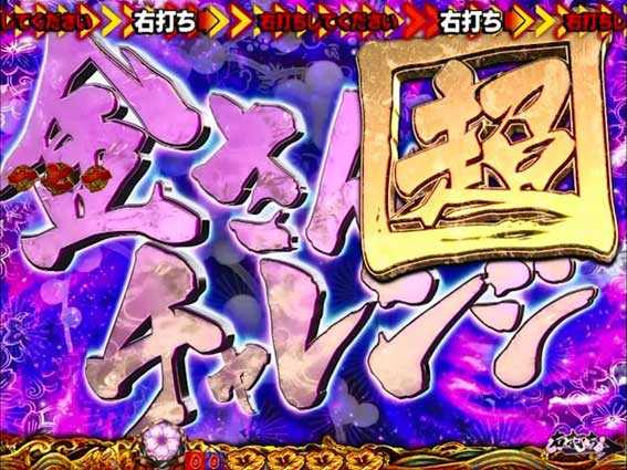 ロゴ役物が落下した後、襖が開いて「ご出座」の文字が出現すると発展。2パターンあり、どちらも高期待度となっている。