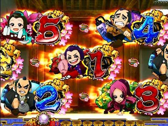 図柄が「321」と並ぶ、または「54321」が画面内に停止でお裁きチャレンジへ。金さん三番勝負リーチ発展の出目もアリ!