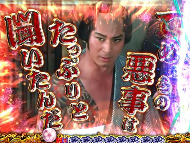 | 変動中演出 | ・背景変化予告(悪人屋敷) ・図柄連続予告(3連) ・怒涛の啖呵 |
