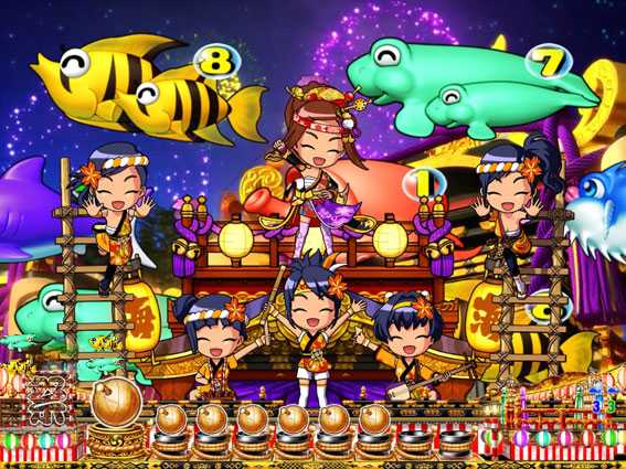 | リーチの種類 | ・ウリンチャンス(全モード共通) ・豪華絢爛リーチ(海・ジャパンモード) ・横笛リーチ(ジャパンモード専用) ・和太鼓リーチ(お祭りモード専用) ・打ち上げチャレンジ(お祭りモード専用) |