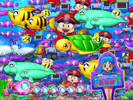 『CRスーパー海物語 IN JAPAN』が、誰もが知る人気ゲーム「桃太郎電鉄」とタッグを組み、甘デジSTタイプとなって登場。「桃鉄」キャラは基本的にプレミアム的位置付けとなっており、大当りラウンド中以外で出現すれば超激アツだ。また、大当りラウンド中は「桃鉄」ならではの昇格演出や保留連示唆演出を楽しむことができるぞ!