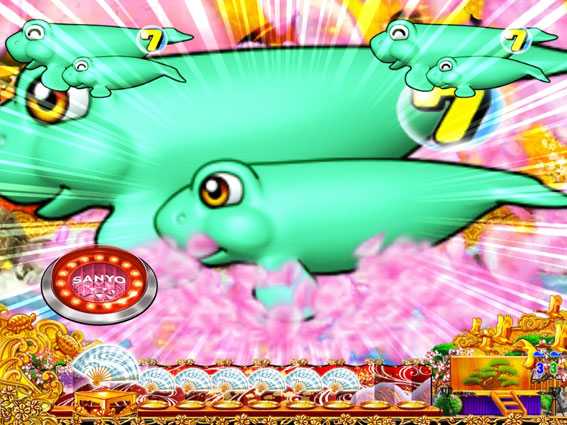 海モードではおなじみの3つのスーパーリーチ以外に、豪華絢爛リーチ(ジャパンモードでも発生)が発生。リーチ直後と豪華絢爛リーチで、2回魚群が登場した場合は超激アツとなるぞ!