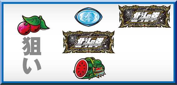 | 備考 | ★技術介入成功で最大枚数を獲得可能 ★オーラの色や小役ランプの色は同時当選役を示唆 ★北斗揃いはRT突入濃厚! |