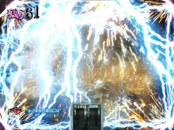 電サポ中に停電クラッシュ予告が発生すると超激アツで、サブ液晶が落下した状態のままで大当りがスタートする。15R確変大当りのため、終了後に突入する最上階モードはSTとなる。