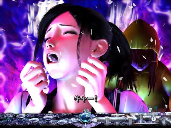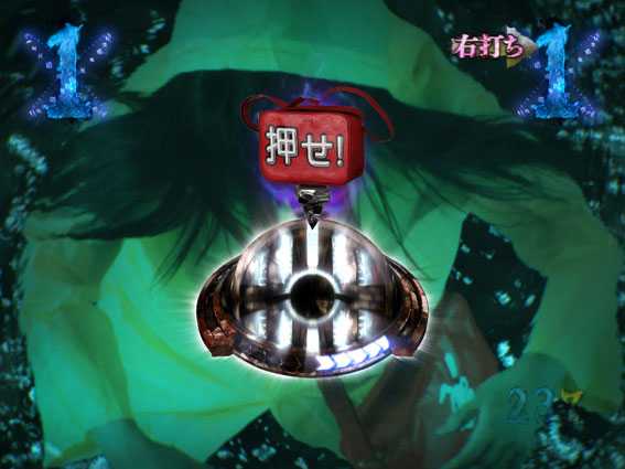 制限時間内に、ボタン連打で仄ビジョンを落下させることができれば大当り。