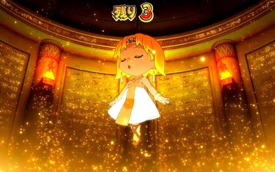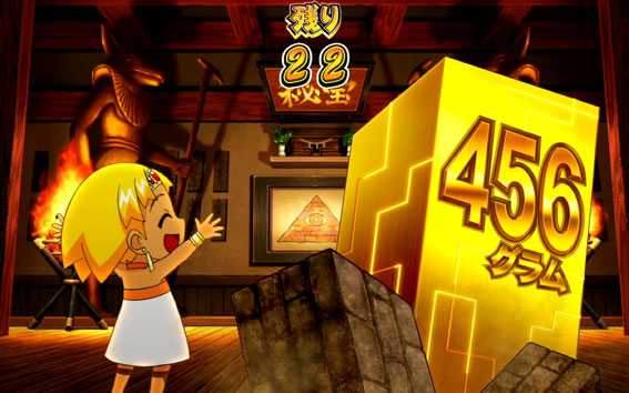 まずBB開始時は、「ストーリーBB」と「お宝BB」のどちらにするかを選択。前者選択時は秘宝伝のストーリー(全13話)を1話ずつ楽しむことができ、後者選択時は過去の大都マシンのBGMが楽しめる。終了後はRTへ突入するが、選択したBBの種類でRT中の演出が変化するぞ。また、ボーナス中は簡単な技術介入を行うことで最大枚数を獲得することが可能だ。