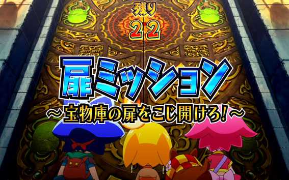 お宝発見ステージへはチャンス目出現時の一部で移行。宝箱が開き、中から高確率ロゴが出現すれば高確率へ突入。「発展」の文字は連動演出へ発展し、「WIN」や「BIG」の文字出現なら超激アツだ。なお、背景は通常ステージと連動しており、この法則が崩れるとチャンスとなる。(チャンスパターンの例:森ステージ中に通路背景のお宝発見ステージ移行など)