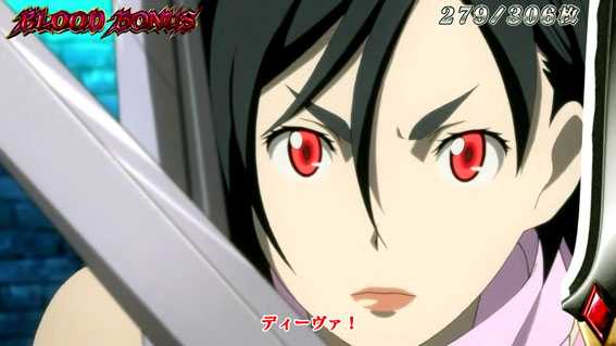 BLOOD BONUSは前後半の2パート構成。前半ではカットイン発生時にBLOOD EYEが揃うと刀の色が変化(青<黄<緑<赤<虹の順にバトル勝利期待度アップ)。後半ではバトル演出が展開し、ディーヴァに勝利すればART当選となる。なお、ART中のBLOOD BONUSでバトルに勝った場合は女王血戦をゲットできる。