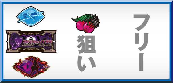 | 左リール枠上~上段にBAR(DEAD or ALIVE図柄)狙い! |