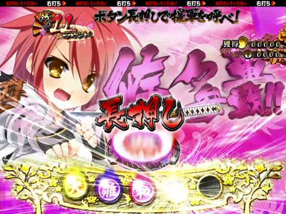 有名武将を美少女化したPCゲームとのタイアップ機。萌え要素てんこ盛りの液晶演出はもちろん、大当りが矢継ぎ早に訪れる本機ならではの連チャンシステムも見所となっている。