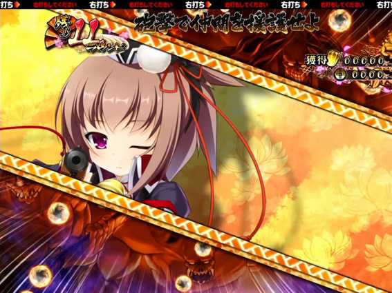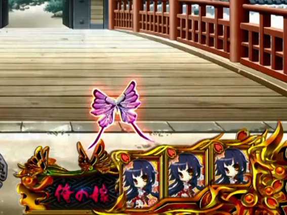 ボタンPUSHで恋姫の頭をポンポン。恋姫がゴキゲンになれば天下分け目チャンスへ発展する。なお、登場する恋姫の種類で期待度が変化する模様。