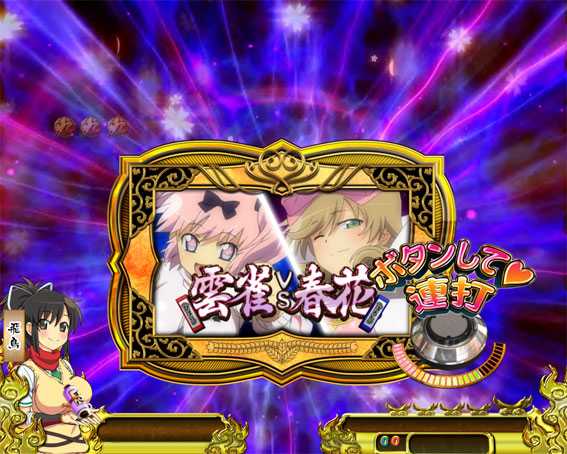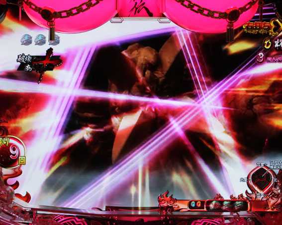 這緊虞猛怒中の4R大当り。ラウンド中は飛鳥VS大道寺のバトルが展開し、飛鳥が勝てば爆NEWハイパーバトルへ突入、負けると這緊虞猛怒へ再突入する。