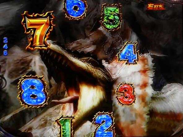 7図柄の初当りは15R確変の「大狩猟BONUS G」。ラウンド後は大狩猟モードへ突入。
