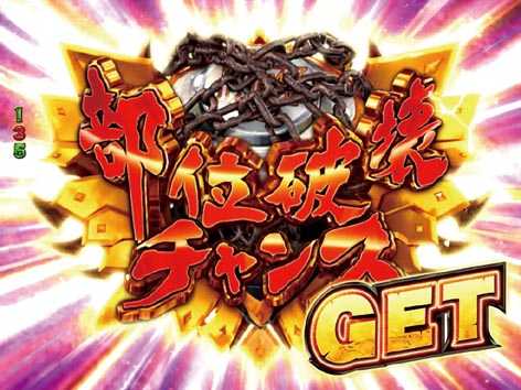 いずれのリーチも後半へ発展すればチャンス。タイトルの色、アイテムの使用、シェイクビジョンなど多彩なチャンスアップの中で、もっとも重要なのが「部位破壊チャンス」。成功すれば6割近くが大当りに結び付くぞ!