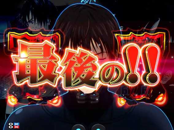 | トータル:59.3% ・テロップ赤:83.5% ・背景に赤い月:93.9% ・建物の壁に「ちゃんす」:93.3% ・建物の壁に「激あち」:99.3% ・終盤に「GANTZ」カットイン:73.5% ・GANTZフラッシュ発生:98.1% サプライズボタン:超激アツ |