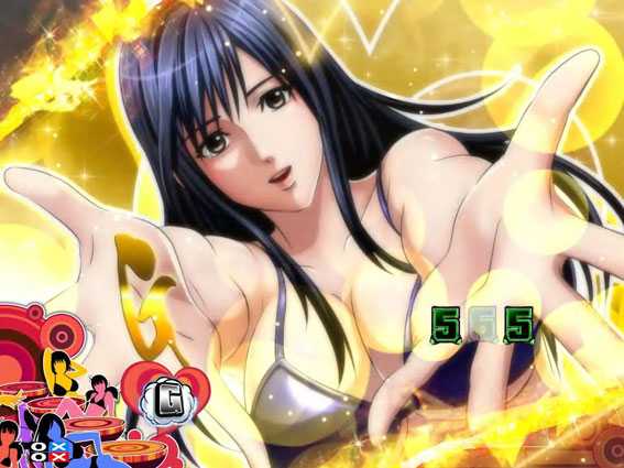 リーチ後に3人の女の子カットイン発生でチャンス! 金背景ならさらにアツい!!