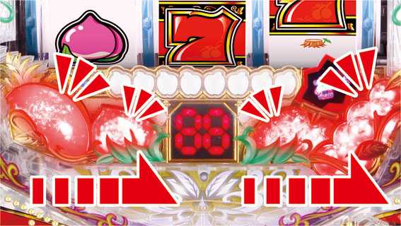 変動中に、ステージ上部にあるくだものレリーフが光るとチャンス到来!