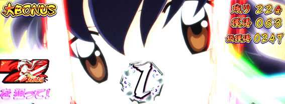 大BONUS中は、カットイン発生時に赤7が揃えばARTに当選。液晶でかごめが登場する演出が発生すると、次ゲームでのカットイン発生の可能性が高まるぞ。