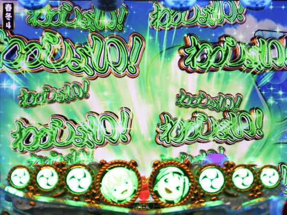 | わっしょい役物連続 | ■緑・・・7.51% ■赤・・・88.34% ■桜柄・・・大当り濃厚 ■虹色・・・大当り濃厚 |