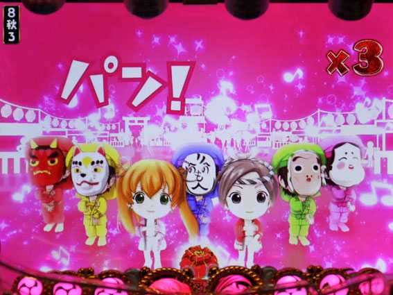 CGで展開するスーパーリーチの1つ。巨大な太鼓を叩いて大当りを狙う。