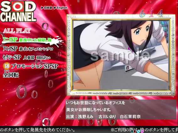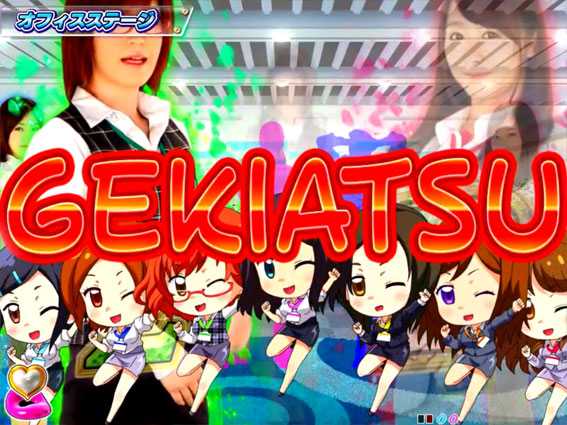 「温泉」「通勤ダッシュ」「大掃除」「オフィスシンクロ」の4パターンが存在。いずれも演出成功で大当りとなるが、期待度は高くない。ハズレ後は、18禁回転ギミック作動からのプロモーションSPSPリーチ発展に期待したい。