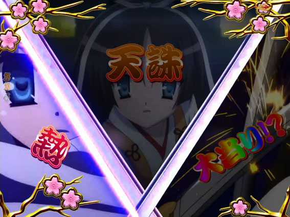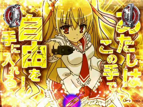 「緋弾覚醒」の文字出現後、図柄がテンパイすると発生。ボタンPUSHでアリアフィギュアが落下すれば大当りだ!