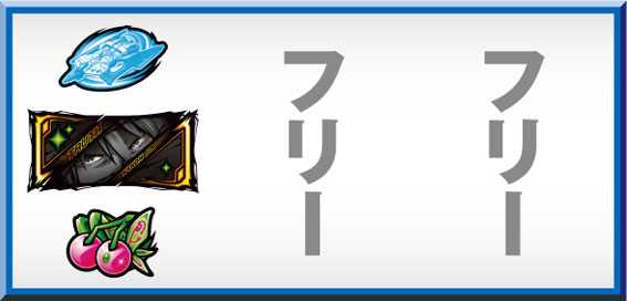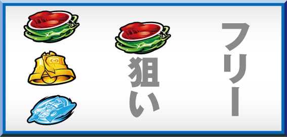 | 弱チェリー・チャンス目<強チェリー<弱スイカ<BB・エピソードボーナス<強スイカ<RB | ||