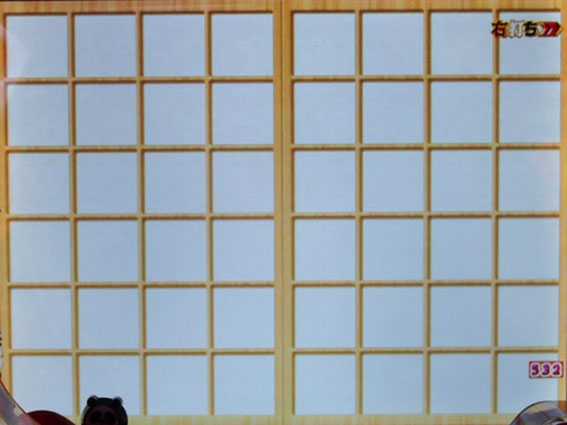 | 障子アイテム予告 | ■マンボウ・・・47.9% ■「たいへんよくできました」・・・大当り濃厚 ■ニッキー・・・大当り濃厚 |