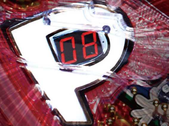 P牌ランプの数値がFF(100まで貯まると表示)になると牌を獲得し、液晶右上に貯留される!