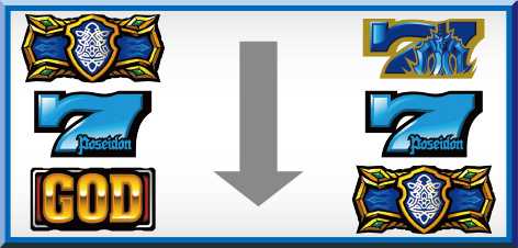 ゴッドフューリー中の「ヒポカンパス」「ポセイドン」カットイン演出発生時は、第1停止ボタン押下前にサブ液晶タッチ、またはPUSHボタン押下で青7が揃うか否かを判別できることがある。