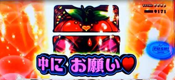 中リールにデカチェリーを狙い、右リールはフリー打ち!