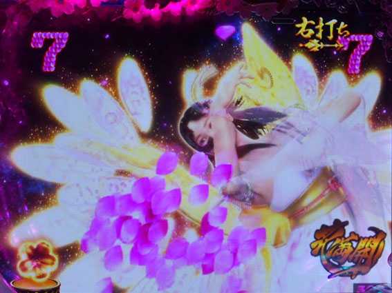 3・7図柄が揃うと発生する16R確変大当り。終了後は満開モードへ移行する。